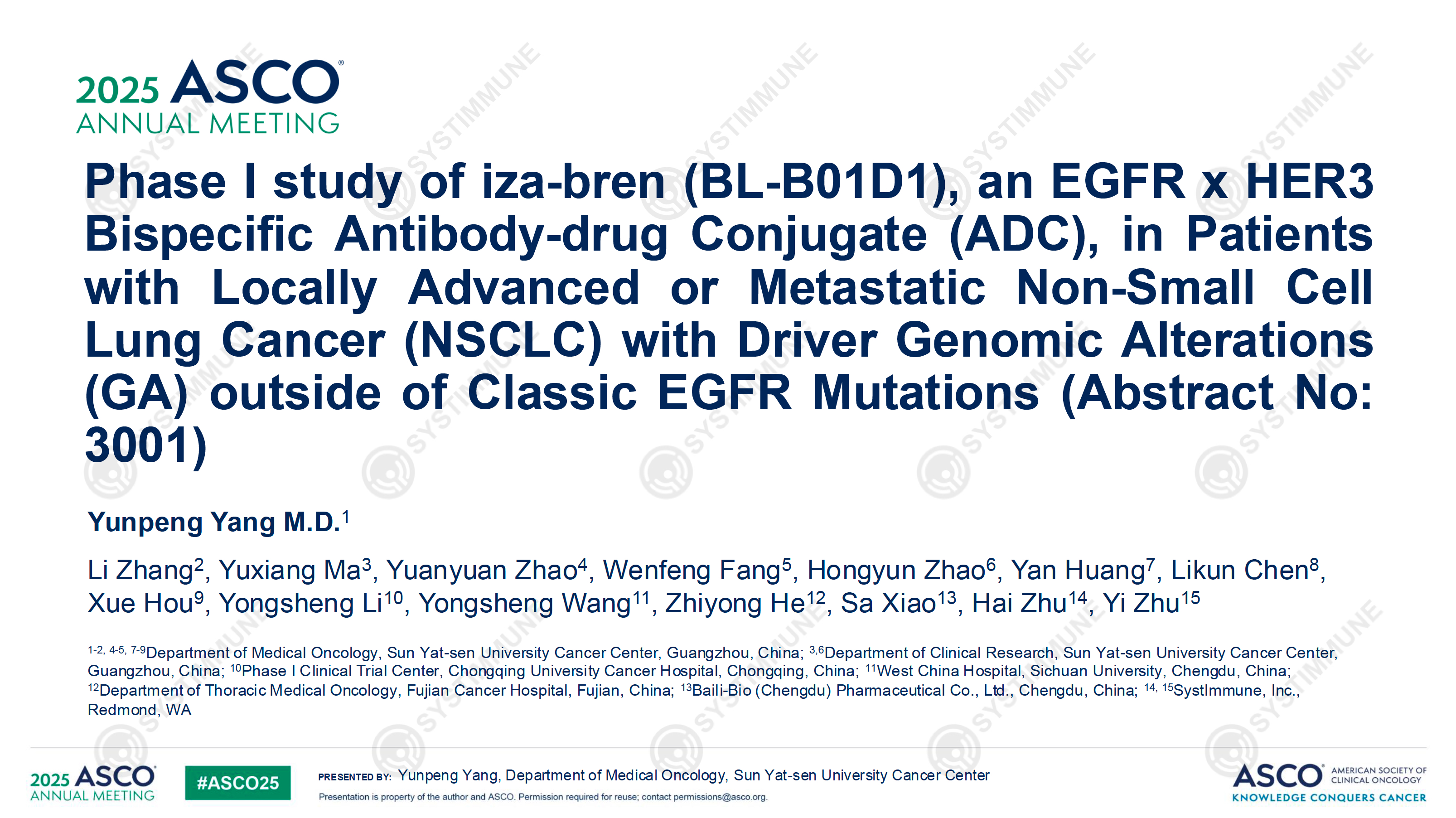 Phase I study of iza-bren (BL-B01D1), an EGFR x HER3 Bispecific Antibody-drug Conjugate (ADC), in Patients with Locally Advanced or Metastatic Non-Small Cell Lung Cancer (NSCLC) with Driver Genomic Alterations (GA) outside of Classic EGFR Mutations
